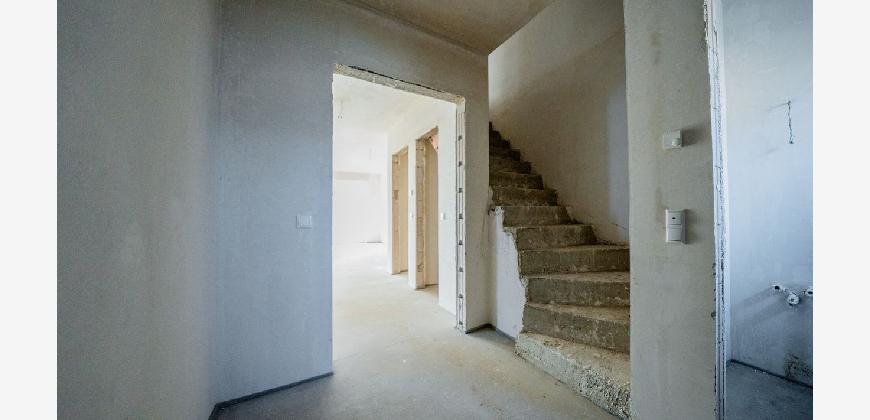Im Obergeschoss befinden sich zwei flexibel nutzbare Zimmer sowie ein Schlafzimmer. Das Badezimmer ist bereits mit einer Vorwandinstallation für Toilette und Waschbecken vorbereitet; Anschlüsse für Dusche und Badewanne sind vorhanden.