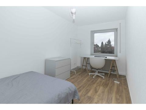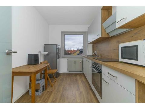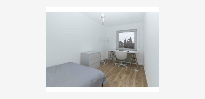 Die moderne, großzügige 3-Zimmer-Wohnung befindet sich im 1. OG eines kleinen, ruhigen Wohnhauses mit gepflegter Mieterschaft. Sie verfügt über drei Schlafzimmer, die zur Einzelzimmervermietung angeboten werden. Eines der Zimmer verfügt über einen Balkon. Die Gemeinschaftsräume bestehen aus einer Küche mit neuwertiger, moderner Einbauküche, einem hellen Tageslichtbad mit Fenster und Badewanne sowie einem einladenden Flur.