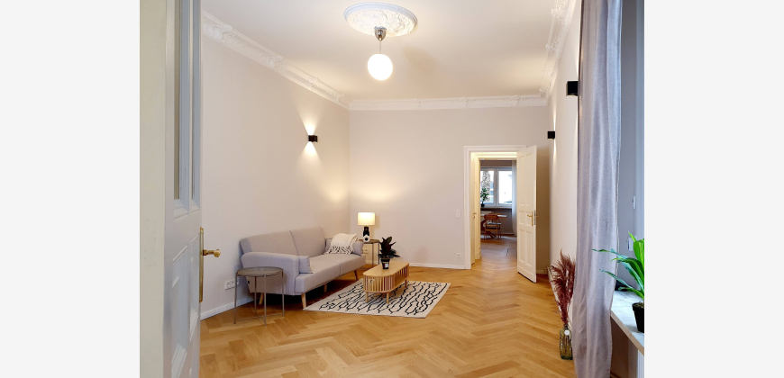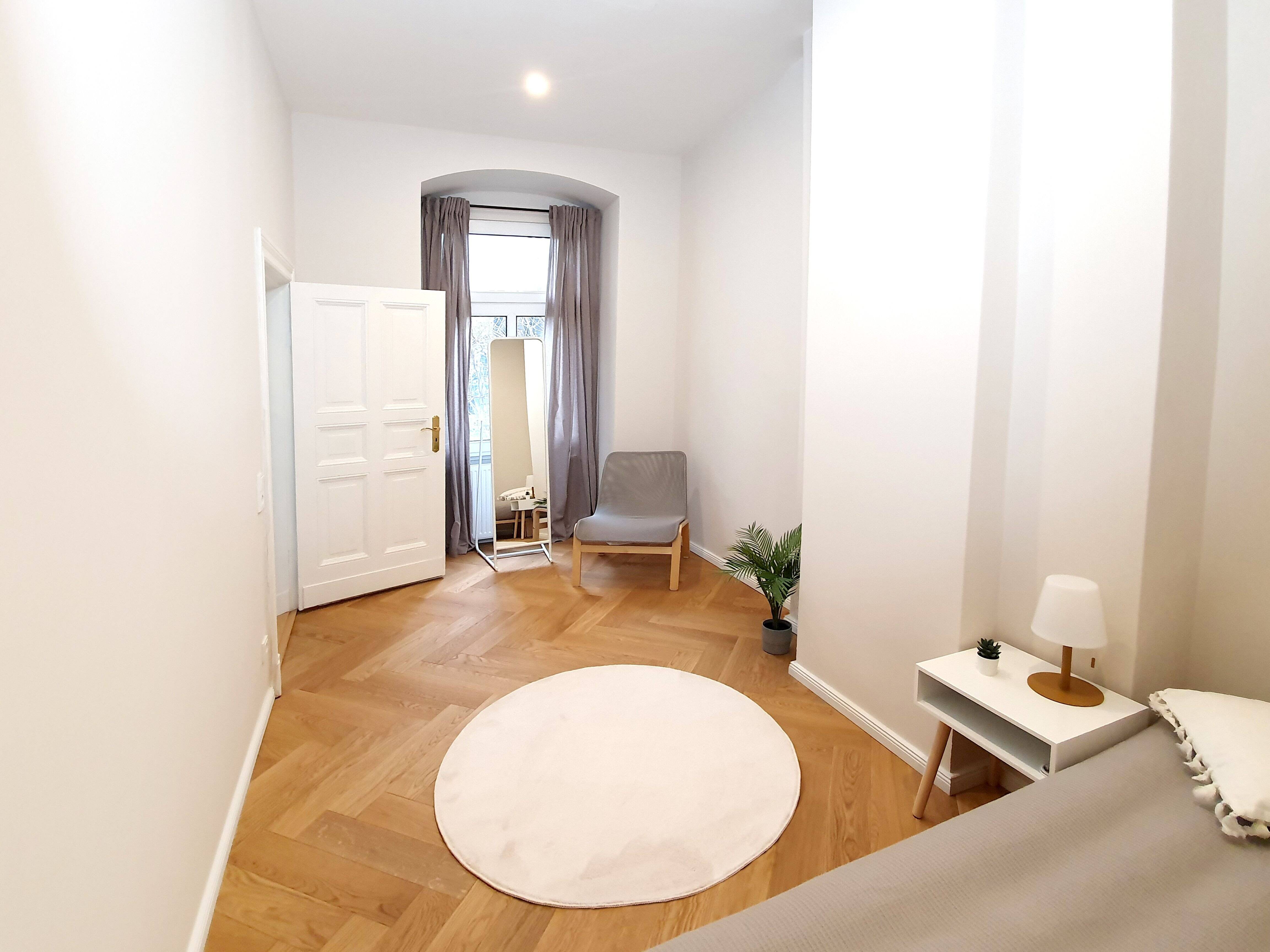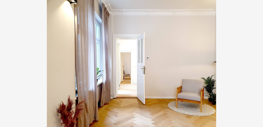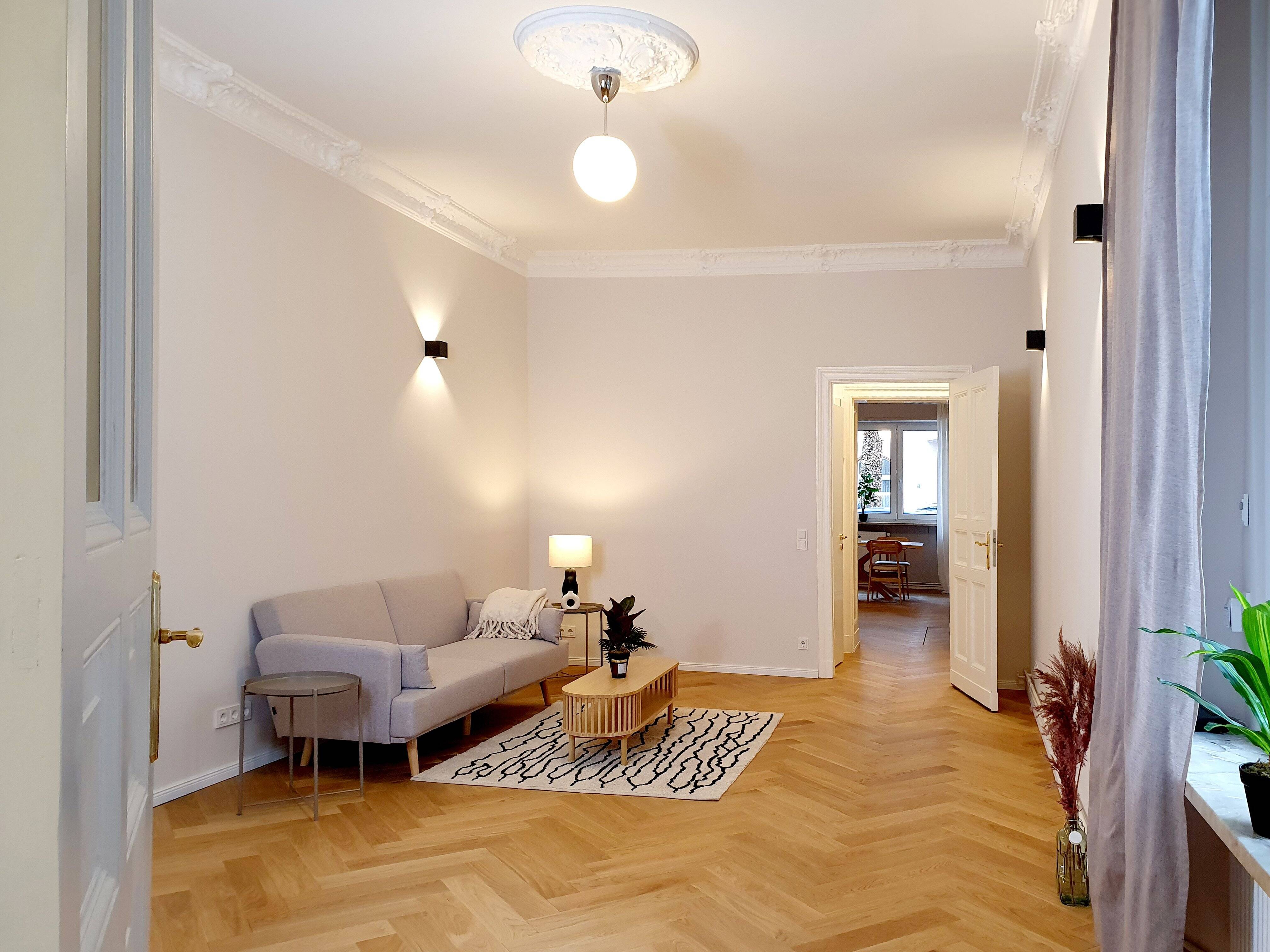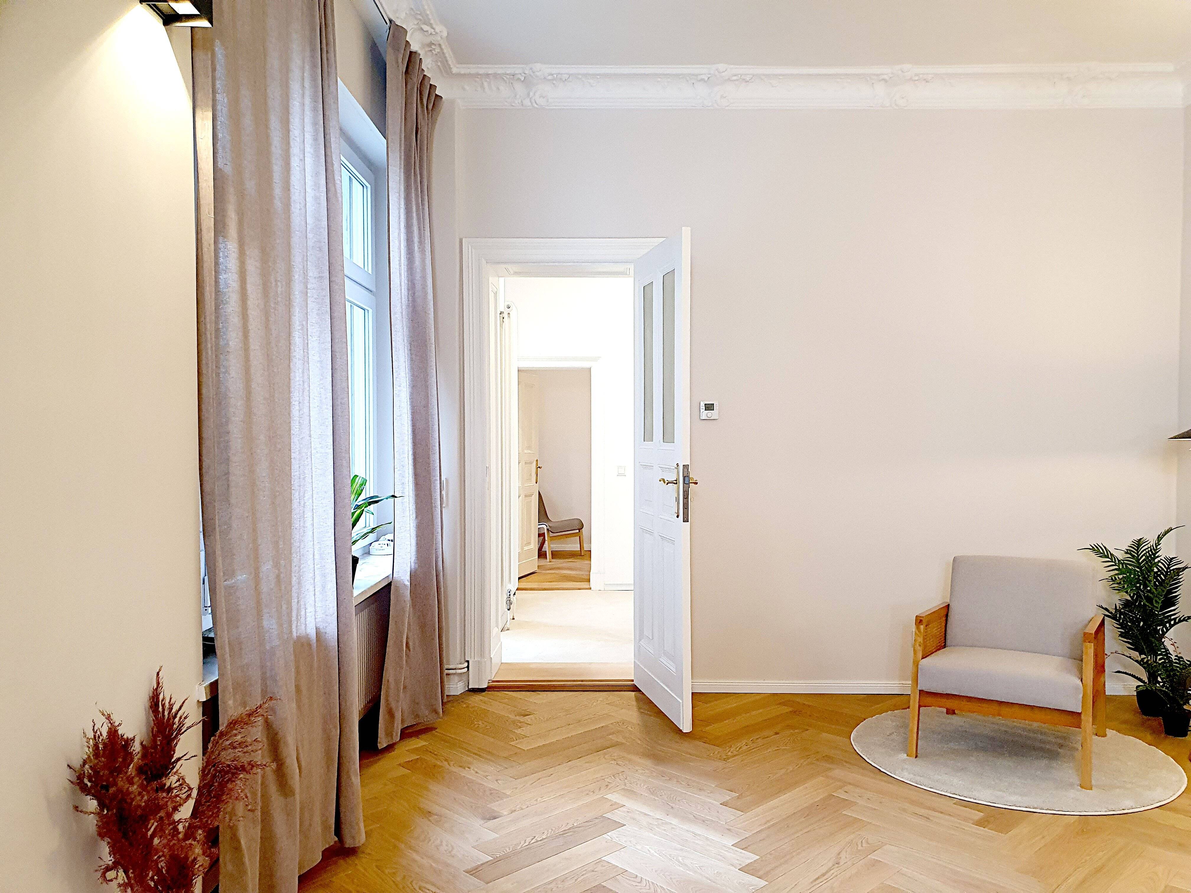 888888888 hochwertig saniertes Erdgeschossappartment. Die Wohnung besticht auf 100m² Wohn- und Nutzfläche durch einen einladenden offenen Grundriss, der ein großzügiges Raumgefühl vermittelt. Die 3-Zimmer Wohnung mit einem Bad en Suite und einem separaten Dusch-WC verfügt über wunderschöne originale Deckenstuckelemente aus dem Jahr 1893 und eine Deckenhöhe von bis zu 3,20m. Der gepflegte und bepflanzte ruhige Innenhof ist direkt von der Wohnung aus zugänglich, wo Sie sich hinsetzen und Ihren Morgenkaffee genießen oder sich wunderbar vom Alltag erholen können.