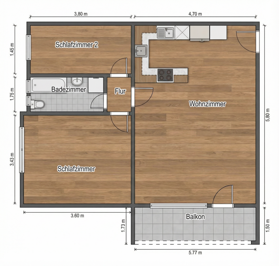 Geräumige möblierte 3-Zimmer-Wohnung mit 2 Bädern & Tiefgarage – Gladbeck Innenstadt