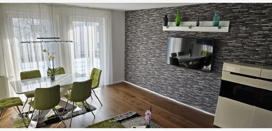 Diese charmante 4-Zimmer-Wohnung mit ca. 95 m² Wohnfläche liegt im 1. Obergeschoss eines modernen Mehrfamilienhauses in Kirchheim bei München (Heimstetten). Sie besticht durch eine gehobene Innenausstattung mit Holzparkett und verfügt über ein Badezimmer mit Fenster und Waschmaschinenanschluss sowie ein separates Gäste-WC mit Dusche. Die Küche ist voll ausgestattet. Baujahr des Hauses ist 2001. Ein großzügiger Balkon lädt zum Verweilen ein. Die Wohnung ist ab dem 1. April 2026 verfügbar. Ein Keller bietet zusätzlichen Stauraum, und ein Außenstellplatz für einen PKW ist vorhanden sowie im Kaufpreis bereits inkludiert. Des Weiteren bietet die Wohnanlage einen gemeinschaftlichen Trockenraum sowie Fahrradabstellkammer im Keller und Fahrradschuppen im Außenbereich.