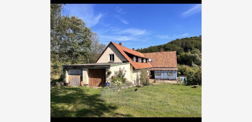 Im Außenbereich befinden sich derzeit Gemüsegarten, zwei Gewächshäuser, Hochbeete und Obstbäume – alles sofort nutzbar oder nach eigenen Vorstellungen weiterzuentwickeln.