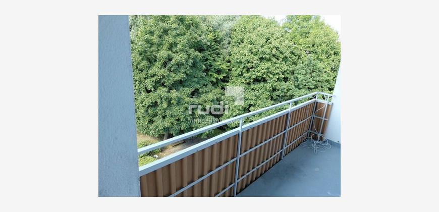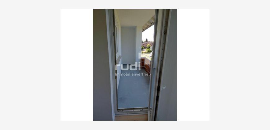 Das großzügige Wohnzimmer bietet direkten Zugang zu einer sonnigen Loggia mit Blick ins Grüne. Das Badezimmer verfügt über ein Fenster und ist mit einer Badewanne ausgestattet. Ein praktischer Kellerraum gehört ebenfalls zur Wohnung.