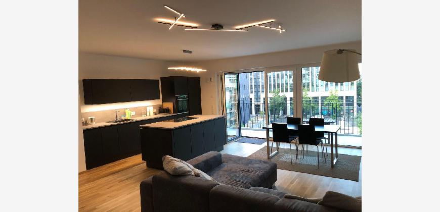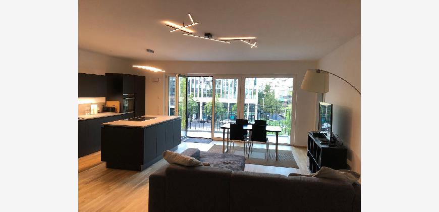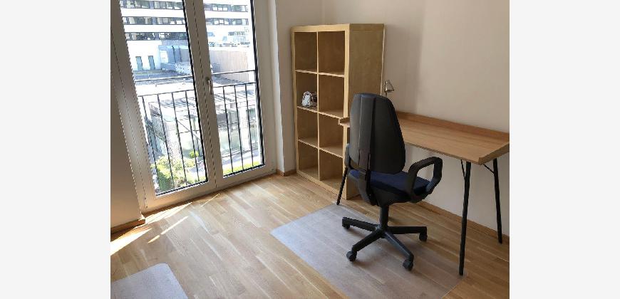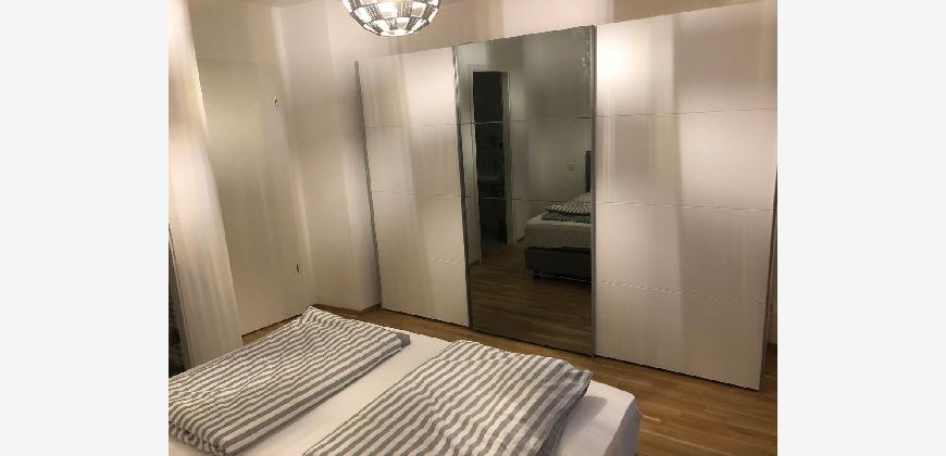 Die Wohnung wird vollmöbliert vermietet. Durchgehend Parkettboden bzw. Fliesen in Bädern und bodentiefe Fenster sowie großer Süd-Ost Balkon.