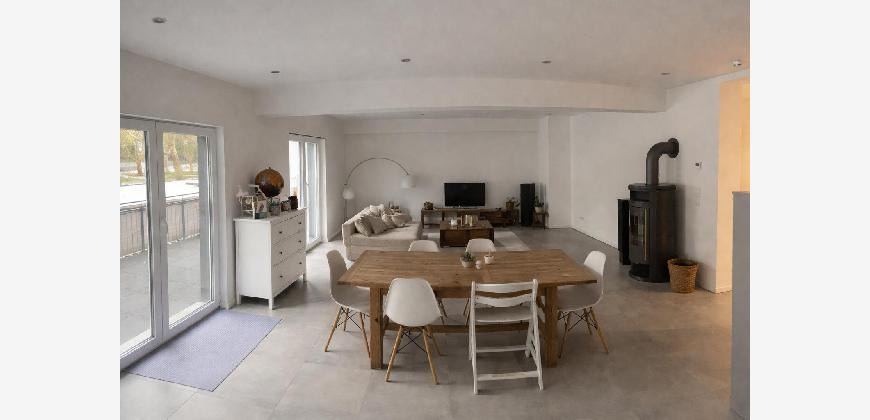 - Großformatige Feinsteinzeugfliesen im gesamten Wohnbereich