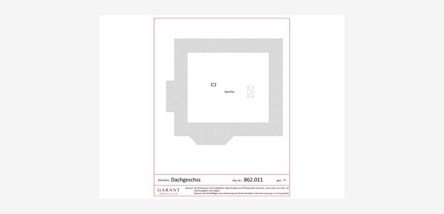 Dachgeschoss mit begonnenem Ausbau. Hier besteht die attraktive Möglichkeit, durch den Einbau einer Dachgaube und, oder Loggia, eine reizvolle Dachgeschosswohnung zu gestalten. Damit lässt sich das Einfamilienhaus leicht in eine interessante Kapitalanlage verwandeln.