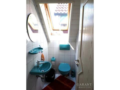 Ausgefallen ist nicht nur ein getrennter Büroraum mit WC, der über einen eigenen Eingang verfügt, sondern auch der ausgebaute Keller. Dieser besitzt ein WC, eine Dusche ist vorbereitet und auch ein Küchenanschluss ist in einem Raum möglich.