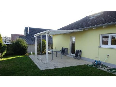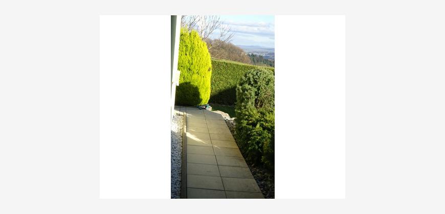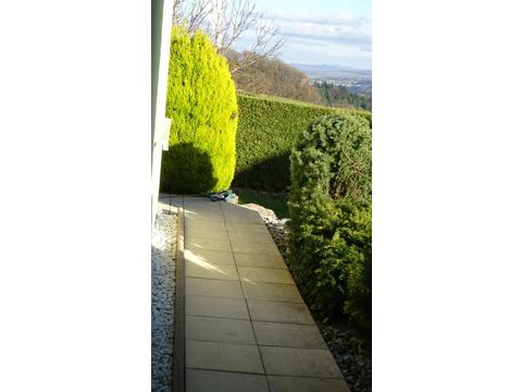 Auf dem Dachboden habe ich ein grosses Roto-Dachfenster 140 x 134 cm mit Motor und Regensensor sowie Rollladen einbauen lassen und habe einen zusätzlichen isolierten Raum erstellen lassen, welcher nicht als Wohnraum gilt, vielfältige Nutzung möglich auch als Büro. Vor ein paar Jahren hat Stiegeler in Hochsal einen Glasfaseranschluss verlegt, selbstverständlich habe ich diese Glasfaserleitung verlegen lassen und bezahlte die Anschlussgebühren. Das Internet ist jetzt noch schneller. Das Wohnzimmer mit Küche hat 50,73 m2 (vom Plan entnommen). Die Küche ist wie auf dem Video, auf dem Plan, den ich erhalten habe ist die Küche etwas anders gezeichnet. Das Haus steht in leichter Hanglage und den Garten habe ich 2017 pflegeleichter gestalten lassen. Ich habe einen Verbindungsweg zwischen den beiden Sitzplätzen erstellen lassen und ein Terrassendach montieren lassen, sodass beide Sitzplätze gedeckt sind. Dieser Weg wurde mit 2 je 40 cm breiten Gartenplatten nebeneinander also 80 cm breit erstellt, damit Sie mit einem Kinderwagen oder Rollator einen genügend breiten Weg haben. Das Video mit einem Rundgang durch das Haus habe ich 2020 aufgenommen, die Pflanzen sind gewachsen, aber diese können Sie zurückschneiden wie es Ihnen gefällt.