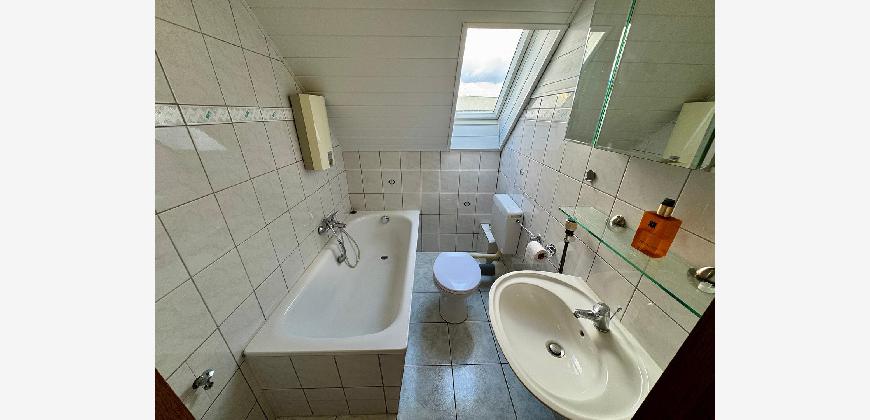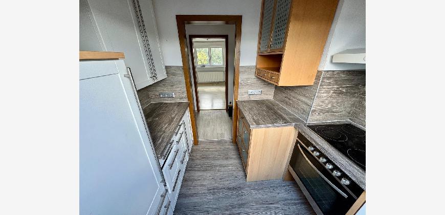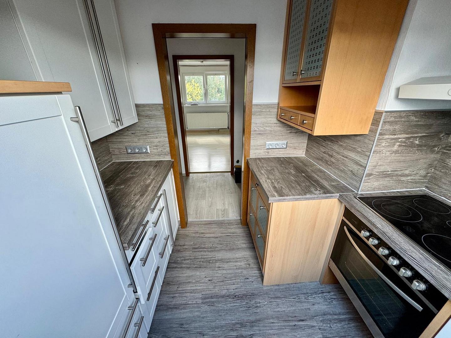 Die Wohnung wurde nach Auszug des letzten Mieters teilweise renoviert. Es wurde in einigen Zimmern neues Laminat verlegt und neu tapeziert und gestrichen. Auf den Fotos fehlen teilweise noch die Fußleisten, die inzwischen angebracht wurden. Mitvermietet wird eine komplette Einbauküche inklusive aller Geräte (Herd, Backofen, Kühlschrank, Spülmaschine).
