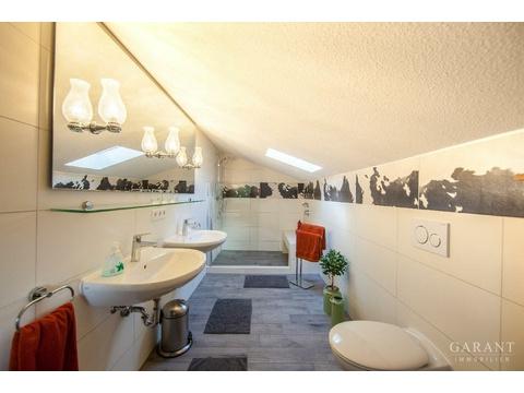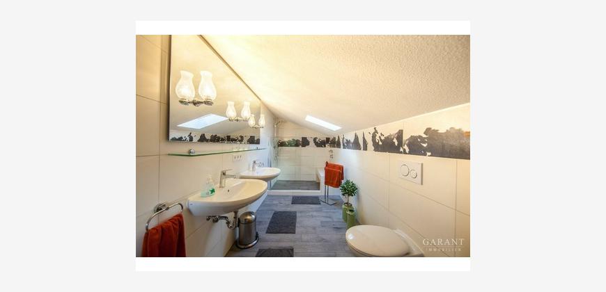 Ein ganz besonderer Schatz ist dieses imposante Haus in Garmisch-Partenkirchen. Absolut ruhig und trotzdem zentrumsnah, mit vier Schlafzimmern, vier Bädern und acht Betten auf drei Ebenen und vier Personen-Sauna, kann dies der Treffpunkt der großen Familie sein und in den nicht belegten Zeiten lukrativ vermietet werden. Aktuell wird es genauso genutzt und es besteht eine gute Belegung über Airbnb. Selbstverständlich kann das Haus auch vollständig im Eigenbedarf genutzt werden. Am Fuße des Kramers, auf der Sonnenseite von Garmisch-Partenkirchen, haben Sie einen traumhaften Blick ins Wettersteingebirge mit Zugspitze und Alpspitze, dieser ist unverbaubar. Das Haus verfügt über sämtliche Annehmlichkeiten, die man sich wünschen kann. Viele Rückzugsorte und Schlafzimmer auf drei Ebenen und Sauna. Da das Haus am Hang gebaut ist, haben Sie zwei separate Eingänge auf zwei Ebenen. Treffpunkt schlechthin ist für die Familie und Gäste der große Wohn-/Essbereich mit offener Küche auf insgesamt ca. 67 qm. Hier im Haus kann man Familie und Privatsphäre verbinden und in einem schönen Miteinander leben. Das Haus wird komplett mit sämtlicher Einrichtung, Geschirr etc. veräußert. Gern informieren wir Sie über die Verdienstmöglichkeiten bei diesem Objekt. Das monatliche Hausgeld mit allen Leistungen beträgt EUR 581,-.