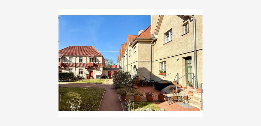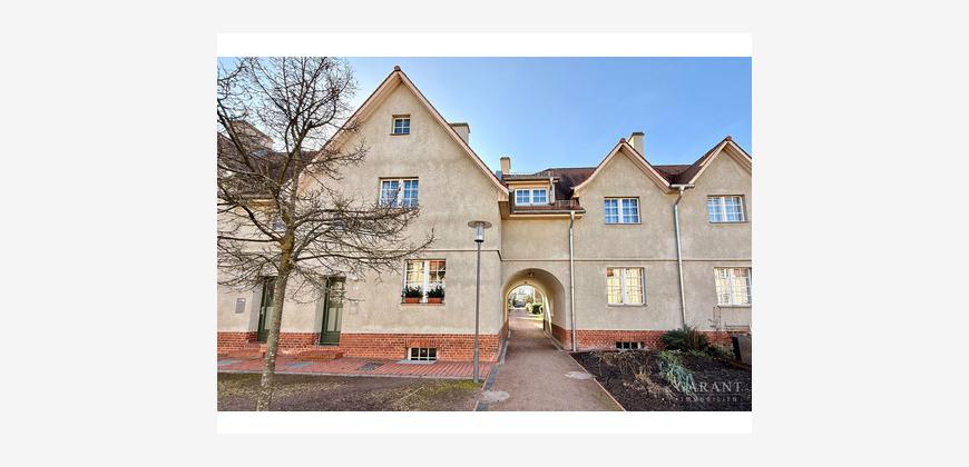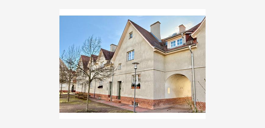 Diese vermietete Maisonette-Wohnung befindet sich in einem liebevoll sanierten Wohnensemble in Berlin-Altglienicke. Das historische Gebäude aus der Zeit um 1910 ist Teil eines denkmalgeschützten Gartenstadtquartiers, das zwischen 2009 und 2012 umfassend und denkmalgerecht modernisiert wurde.