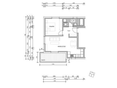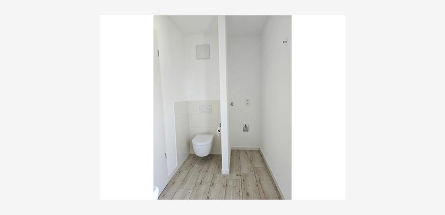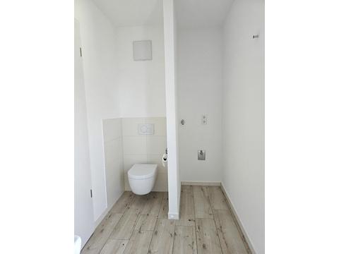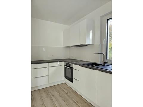 Die Wohnung im 1.OG besteht aus einer großen offenen Wohnküche mit Essbereich, einem Schlafzimmer, einem Bad mit Dusche und Toilette.