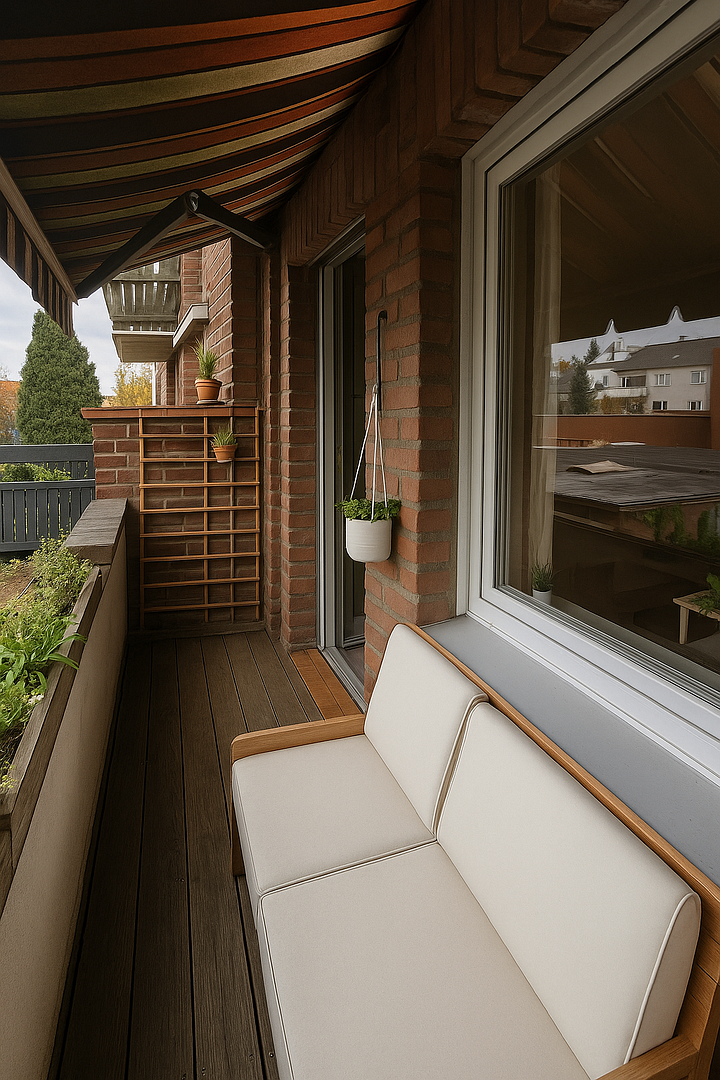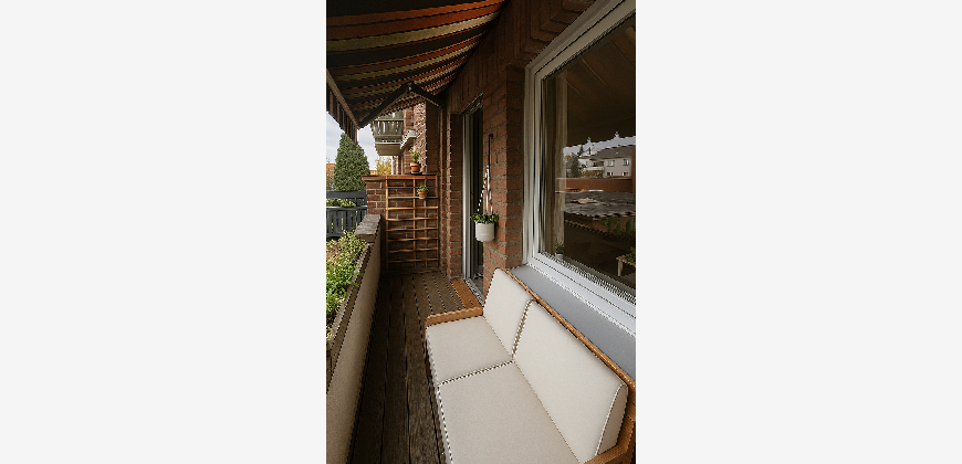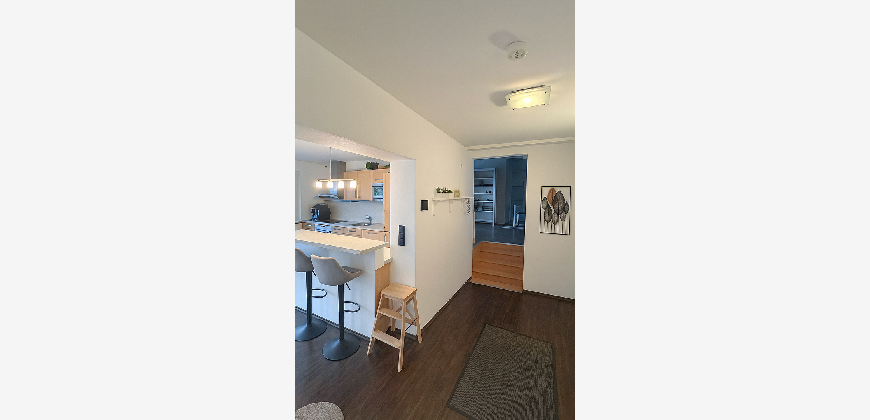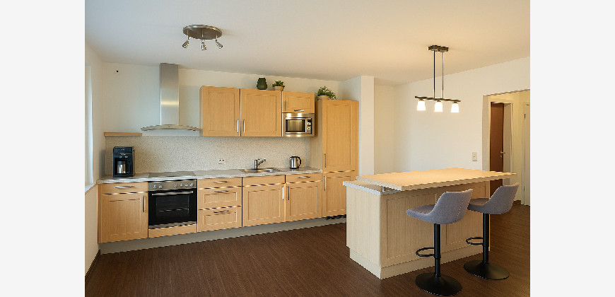 Eine Bar in der Küche lädt zum Verweilen ein. Im Hauptschlafzimmer gibt es elektrische Rollläden. Die zwei großen Balkone sind zum ruhigen Hof hin ausgerichtet. Es gibt genügend Platz zum Sonne tanken, es kann aber auch durch die Markisen beschattet werden.