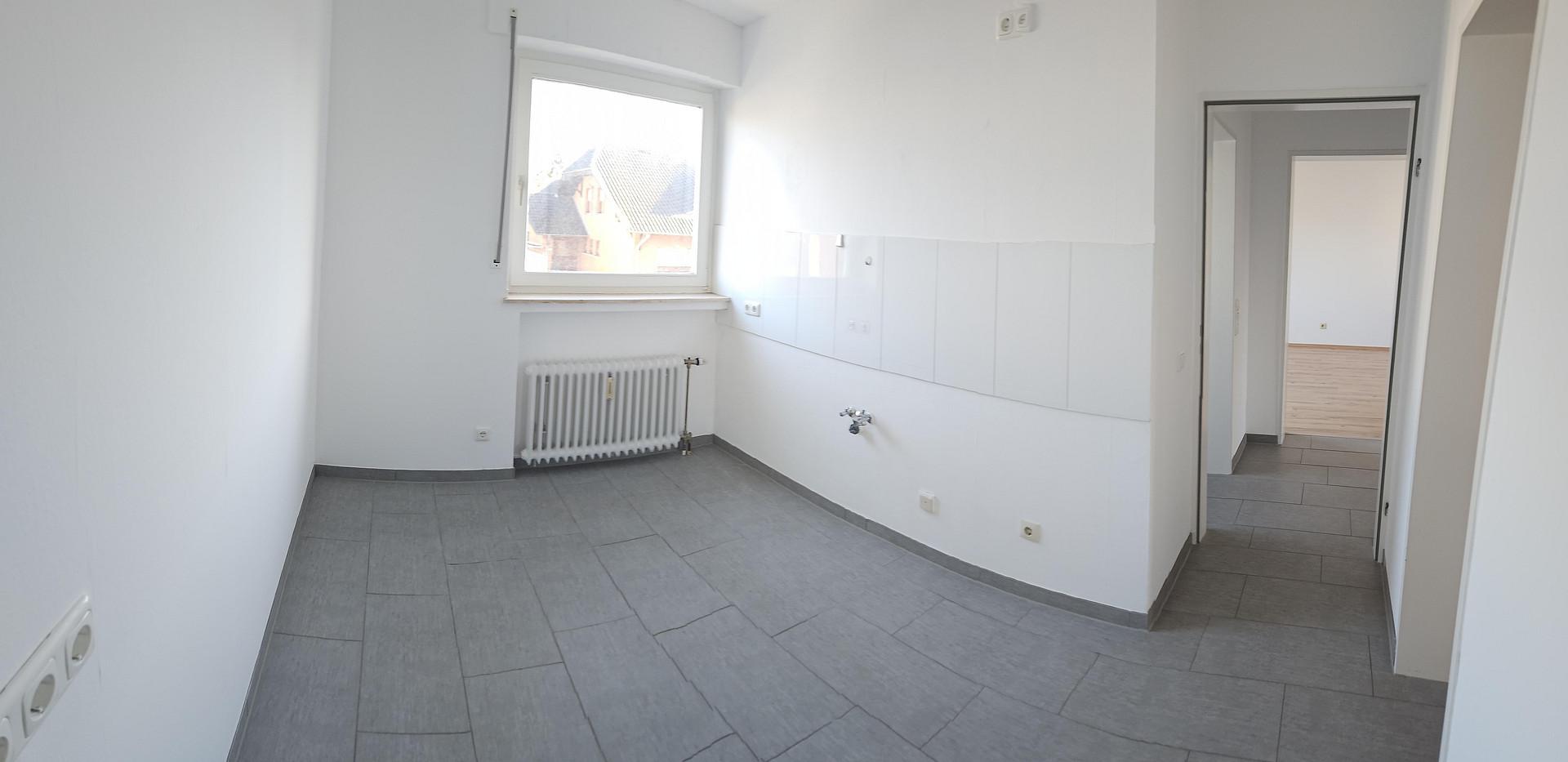 - Flur, Küche und Bad mit großformatigen Fliesen