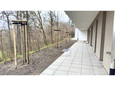 In den stilvollen Badezimmern erwarten Sie edle Fliesen und praktische Handtuchwärmekörper, die zusätzlichen Komfort bieten. Die Fußbodenheizung in allen Räumen sorgt das ganze Jahr über für eine behagliche Wärme. Große Fensterfronten lassen viel Tageslicht in die Wohnungen und bieten einen schönen Ausblick auf die Umgebung, wodurch ein helles und freundliches Wohnambiente entsteht.