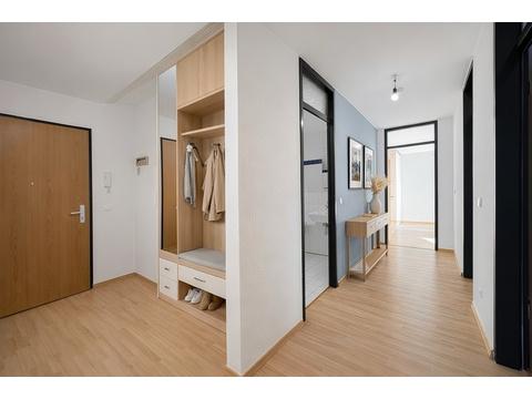 Auf ca. 78,7 m² Wohnfläche überzeugt der klar strukturierte Grundriss mit großzügigen Räumen und funktionaler Aufteilung. Große Fensterflächen sowie bodentiefe Verglasungen im Wohnbereich sorgen für viel Tageslicht und ein offenes Raumgefühl. Die Ausrichtung nach Süd-West und Nord-West schafft eine ausgewogene Belichtung vom Vormittag bis in die Abendstunden.