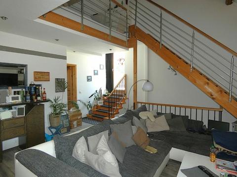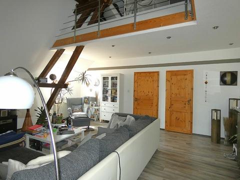 AusstattungIm Erdgeschoss befinden sich der grosszügige Küchen- und Essbereich mit Zugang zur Aussenterrasse. Zusätzlich befinden sich noch ein Gäste-WC sowie der Eingangsbereich auf dieser Etage. Vom Erdgeschoss aus gelangen Sie in die liebevoll gestalltete Gäste-Wohnung, welche mit einem offenen Küchen- und Wohnbereich, sowie ein Schlafzimmer, versehen ist. Im ausgebauten Dachgeschoss befindet sich der Wohnbereich mit Zugang zur Dachterrasse. Der Spitzboden wurde als Schlafzimmer ausgebaut. Das Haus ist teilunterkellert.