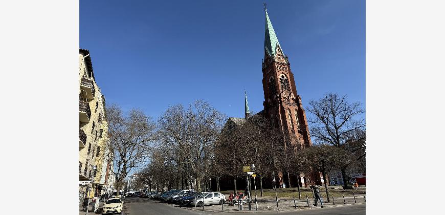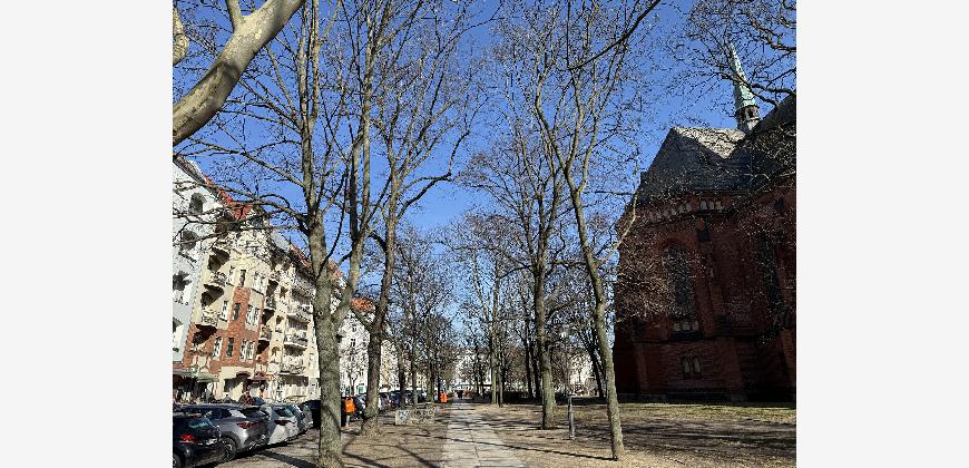 In absolut gefragter Mikrolage von Berlin-Wedding, unmittelbar am Leopoldplatz und vis-Ã -vis der imposanten Neuen Nazarethkirche, befindet sich diese Wohnung in einer der markantesten und zugleich lebendigsten Lagen des Bezirks Mitte.