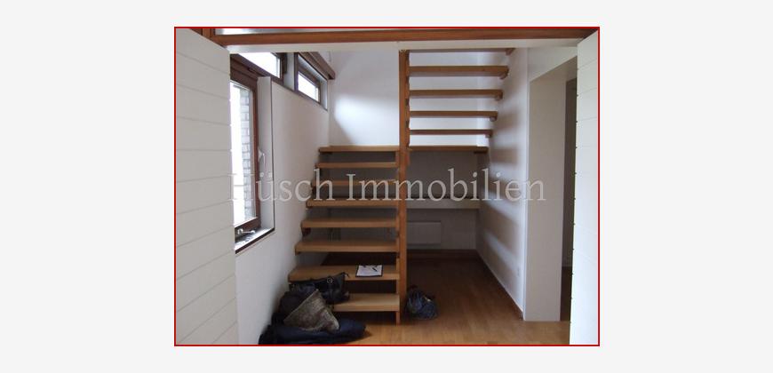 Die Böden sind in allen Wohnbereichen mit einem wohnlichen Eichenparkett ausgelegt. Alle Türen sind in Weiß gehalten. Die dunklen Holzverkleidungen im Wohn- und Dachzimmer können bei Bedarf weiß gestrichen werden.
