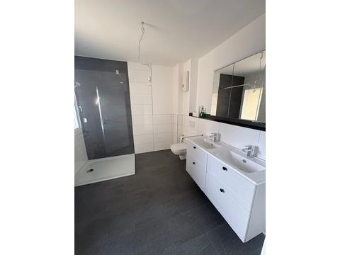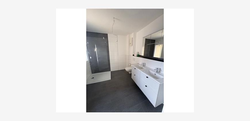 Das Badezimmer ist mit modernen, hochwertigen Fliesen ausgestattet – sowohl am Boden als auch an den Wänden. Besonders hervorzuheben ist der großzügige Küchenbereich, der viel Platz für Koch- und Essaktivitäten bietet.