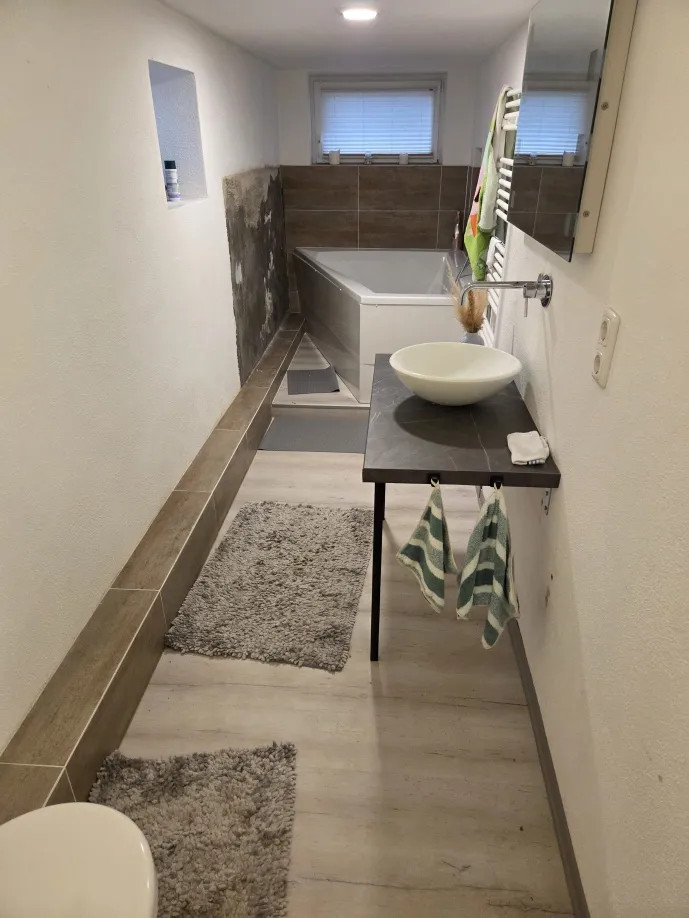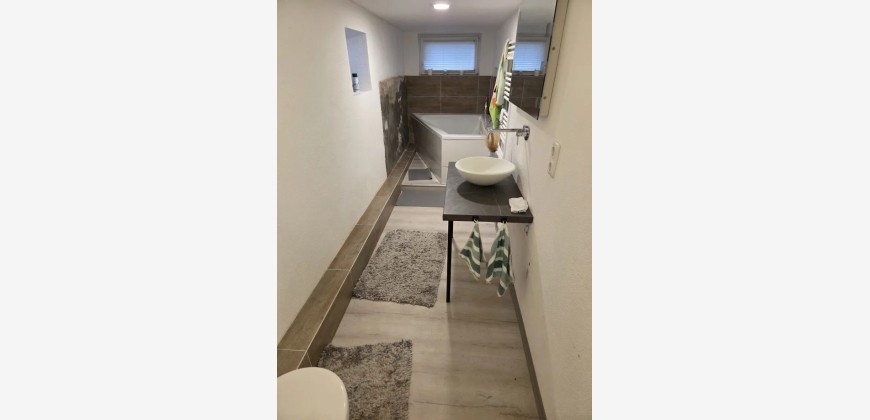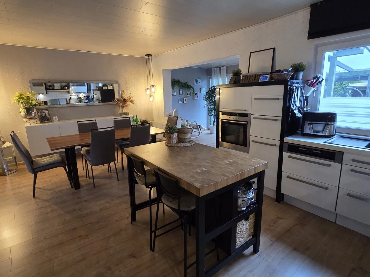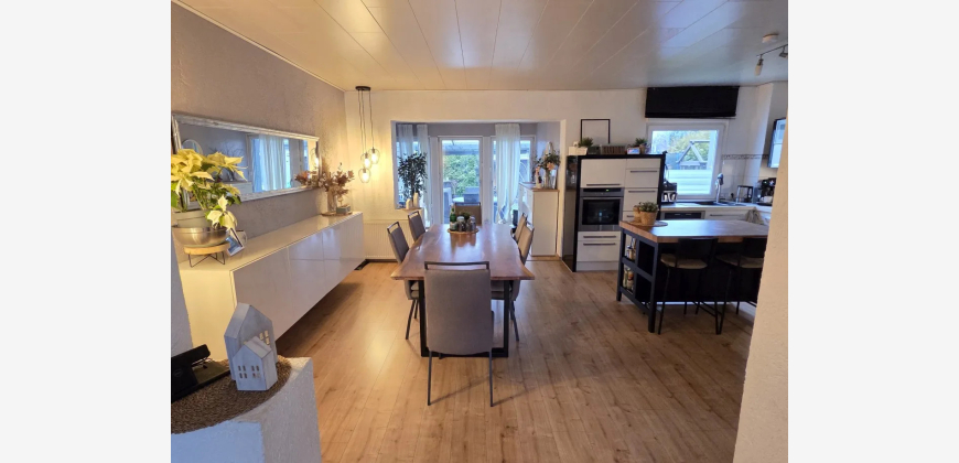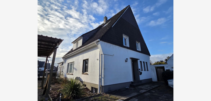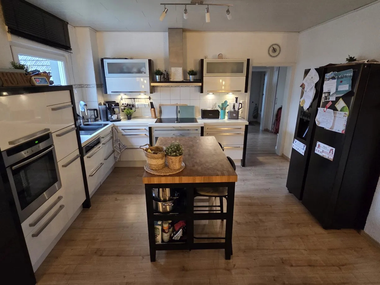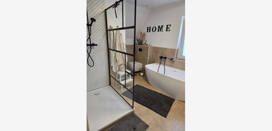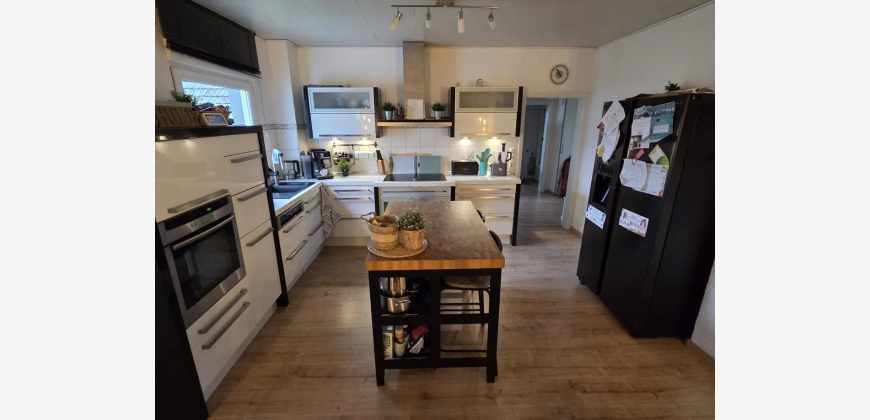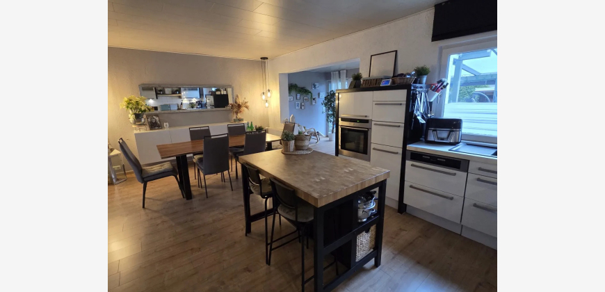 Einfamilienhaus aus 1955, von innen komplett modernisiert, großzügige Raumaufteilung mit satten 198 m² Wohnfläche zzgl. ca. 76 m² Nutzfläche im Untergeschoss, Massivbauweise, 1 1/2-geschossig mit zusätzlich ausgebautem Spitzboden. Insgesamt 5 Schlafräume plus Gäste-Zimmer im UG, großzügige, offene Küche und Wohnbereich mit insgesamt ca. 61 m² - EBK bereits im Kaufpreis enthalten. Raumaufteilung: Erdgeschoss: Eingangsdiele mit Treppenhaus und Duschbad, Büro, offene Küche mit Essplatz, Wohnzimmer und Leseecke zur Terrasse. Dachgeschoss: Schlafzimmer, Badezimmer, zwei große Kinderzimmer, Ankleide mit Treppe in den Spitzboden Spitzboden: großer Raum als Jugendzimmer o. ä. Untergeschoss: Waschküche, Badezimmer, Gäste-Zimmer, Technikraum, großer Hobbyraum und Abstellraum