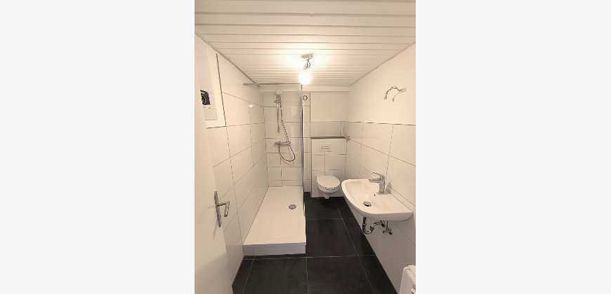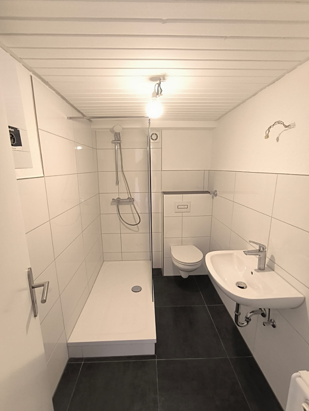 komplett kernsaniertes Badezimmer mit moderner bodenebener Dusche