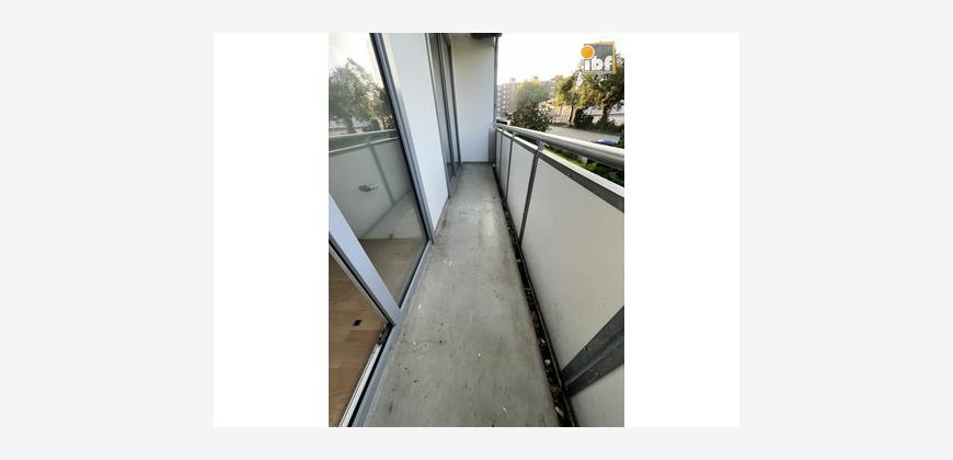 Die Wohnung ist aufgeteilt in ein geräumiges Wohnzimmer mit Zugang zum großen rückseitigen Balkon. Über den Flur gelangt man zur Küche, zum Elternschlafzimmer, dem Abstellraum, dem innenliegenden Bad und dem Kinderzimmer, welches ebenfalls einen Zugang zum rückseitigen Balkon hat. Zur Wohnung gehört ein eigener Kellerraum.