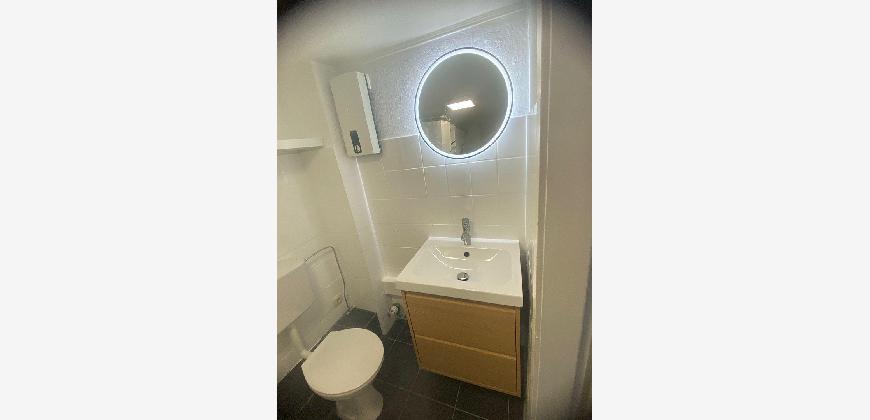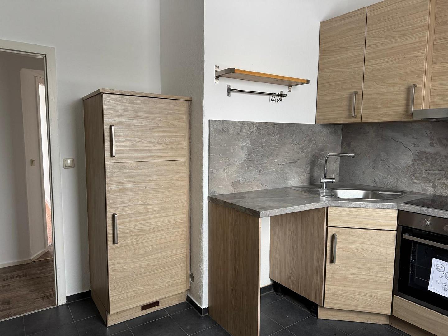 - Einbauküche mit Kühlschrank, Ofen, Kochfeld, Dunstabzug, Spülmaschine und Anschluss für Waschmaschine