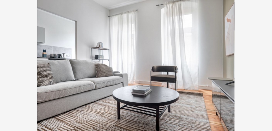 You’ll love this sophisticated Mitte furnished one-bedroom apartment with its modern decor, fully equipped kitchen, and cozy living room. Ideally located, you’re close to all the best that Berlin has to offer! (ID #BER121)Thoughtfully designed with bespoke finishes, modern furnishings, and a fully-equipped kitchen, you’ll enjoy that “I’m home” feeling with this apartment. Whether you’re lounging in your cozy living room streaming the latest and greatest entertainment on the smart TV or premium wireless speaker, or getting some well-earned rest on the superior quality mattress with luxury linens, you’ll fall in love with everything this Mitte apartment has to offer. This apartment also offers in-apartment laundry.Sleeping arrangements King Bed, 70.8in/180cmAmenitiesBuilding amenities unique to this one-bedroom include an on-site: - Dryer - Washing machine - Pets allowedThis furnished apartment is located in Mitte, Berlin's first and most central district. The area is incredibly rich in history, with many of the city's museums and tourist sites located within the neighborhood. Bustling Mitte is one of the city's key business districts, and there is a diverse restaurant scene with options at all price points. You can splash out at a high end restaurant like Schnitzelei Mitte, or head to trendy Hackescher Markt, where cafes and shops are located within a series of labyrinthine courtyards. Mitte is also wonderful for sightseeing: the Brandenburg Gate and Museum Island are both located within the neighborhood. Other highlights include the famous Checkpoint Charlie, Tiergarten Park and the Berlin Zoo. There’s also the historic Tiergarten, one of Germany’s largest public parks and the perfect place for a dose of nature. Another point of interest is Moabit, formerly an important border between East and West Berlin. Berlin's central train station is located in Mitte, and the neighborhood is served by several U-Bahn and S-Bahn lines.Other things to noteThis apartment has flexible lease options, allowing you to book it for three months, a year, or more.Pets are welcome, though weight limits and breed restrictions apply and may incur fees.Please keep in mind that this is a walk up building.Notice: Displayed prices and data are not final, and should be used for informative purpose only. They are not contractual or binding. Energy pass This building is not subject to EnEV.