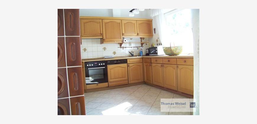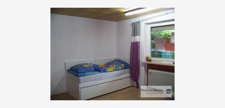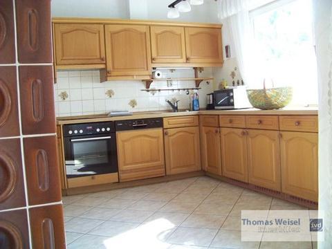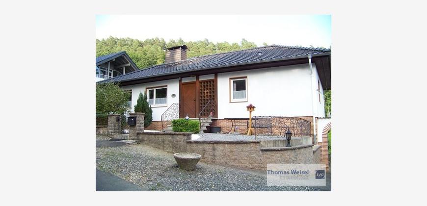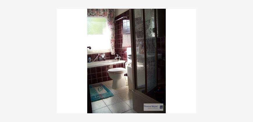 Angeboten wird hier ein gepflegter Bungalow in einem gewachsenen Wohngebiet in ruhiger naturnaher Lage. Im Erdgeschoss kommt man vom Eingangsbereich in die Küche (mit EBK); hier hat ein Kachelofen die Bewohner mit wohliger Wärme versorgt. Hinter der Küche befindet sich das Esszimmer. 3 weitere Räume wurden als Schlaf- und Kinderzimmer genutzt. Das Wohnzimmer hat eine Grösse von ca. 28 m² und besitzt einen Ausgang zum geräumigen Balkon, von wo aus man den herrlichen Garten einsehen kann. Ausserdem steht den Bewohnern noch das Tageslicht-Bad zur Verfügung mit WC, Waschbecken, Dusche und Wanne. Im Untergeschoss befinden sich 3 weitere Zimmer, ein Raum mit Küchenanschlüssen, ein Duschbad mit Waschmaschinenanschluss, der Heizungsraum (Viessmann Vitola Biferral von 2004), das Öllager sowie ein reiner Kellerraum. Das Untergeschoss besitzt auch noch eine eigene Haustür zum Garten. Der grosse Garten (mit Gartenhaus) bietet Raum für vielfältige Freizeitaktivitäten, nicht nur die Kinder werden sich hier wohlfühlen. Für die PKW stehen eine Garage sowie weitere Stellplätze zur Verfügung. Das Dach des Hauses wurde erst in ca. 2011 neu eingedeckt.