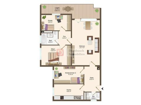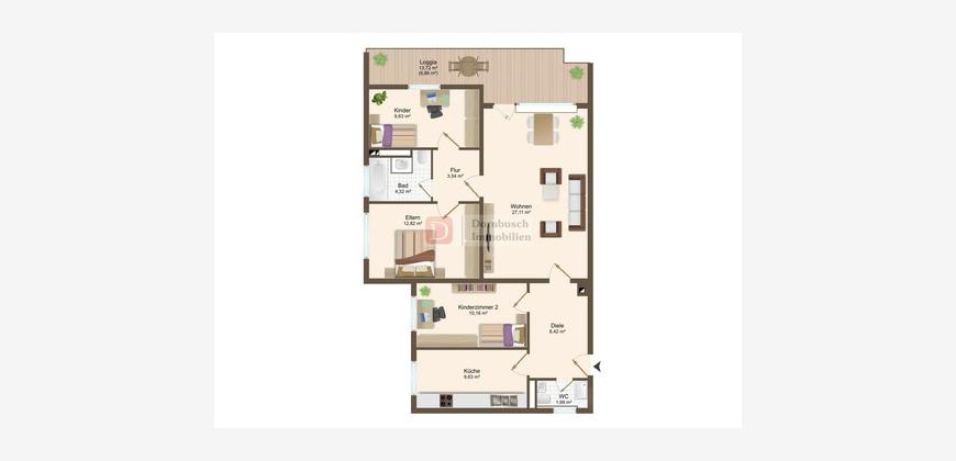 Auf rund 96 m² Wohnfläche bietet sie ideale Voraussetzungen für Paare, Familien oder Kapitalanleger, die Wert auf mehrere Wohn- und Arbeitsbereiche legen.