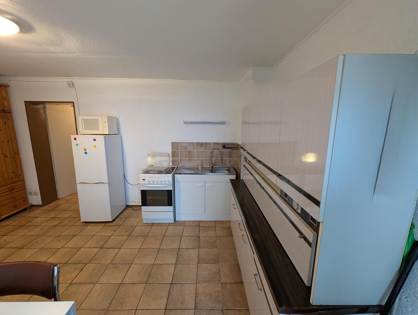 -Küche mit Spüle und Kühlschrank inkl. Gefrierfach
