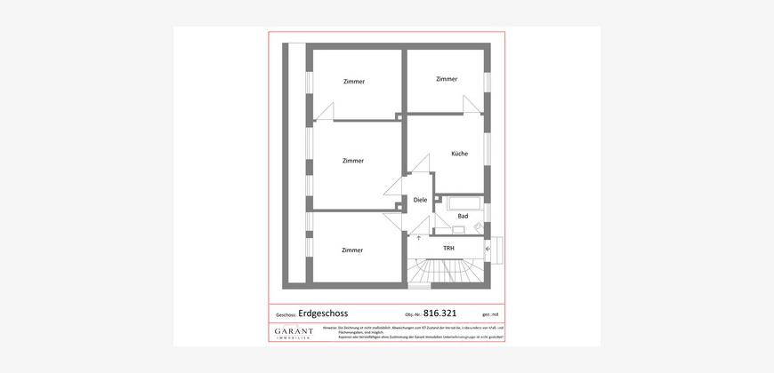 Die Erdgeschosswohnung befindet sich weitgehend im baujahrestypischen Zustand und bietet eine ideale Grundlage für eine behutsame Modernisierung oder individuelle Neugestaltung. Klassische Grundrissstrukturen und eine solide Substanz eröffnen vielseitige Nutzungsmöglichkeiten für Eigennutzer oder Kapitalanleger.