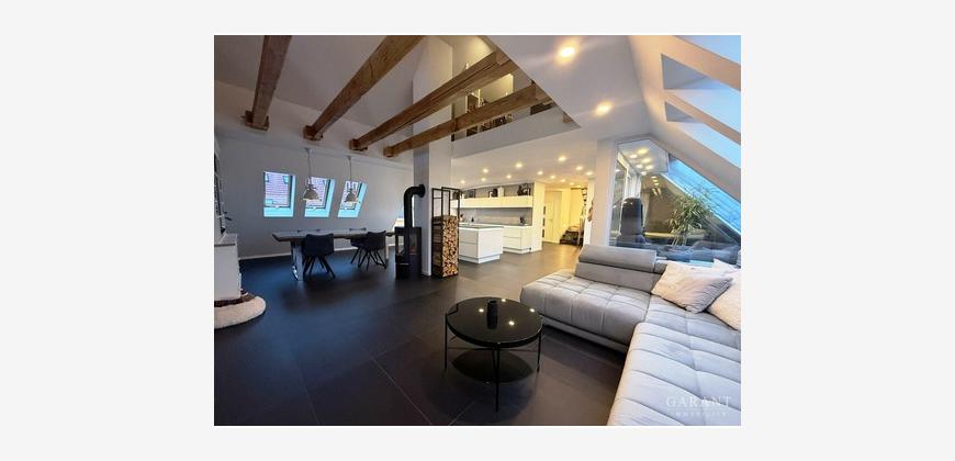 Das Dachgeschoss wurde vor rund zehn Jahren hochwertig zu einer modernen, loftartigen 2 Zimmer-Wohnung ausgebaut. Großzügige Raumhöhen, offene Wohnstrukturen und ein ausgebauter Spitzboden schaffen ein besonderes Wohnambiente mit hohem Anspruch und machen diese Einheit zum Highlight des Hauses.