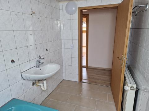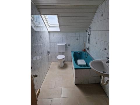 - im Bad befindet sich eine Badewanne, ein WC, ein Waschbecken und ein Waschmaschinenanschluss,