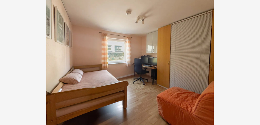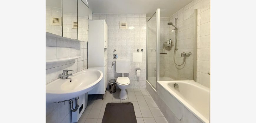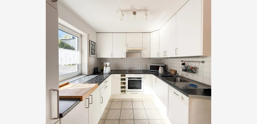 Die separate Küche ist funktional geschnitten und mit einer Einbauküche ausgestattet, die vom Vormieter übernommen werden kann. Neben dem Wohnzimmer stehen zwei weitere Zimmer zur Verfügung, die flexibel als Schlaf-, Kinder- oder Arbeitszimmer genutzt werden können. Das Badezimmer verfügt über eine Badewanne sowie eine separate Dusche, ergänzt durch ein zusätzliches Gäste-WC. Rollläden sorgen für Komfort und Privatsphäre, während ein eigener Kellerraum praktischen Stauraum bietet.