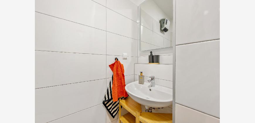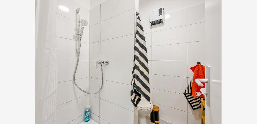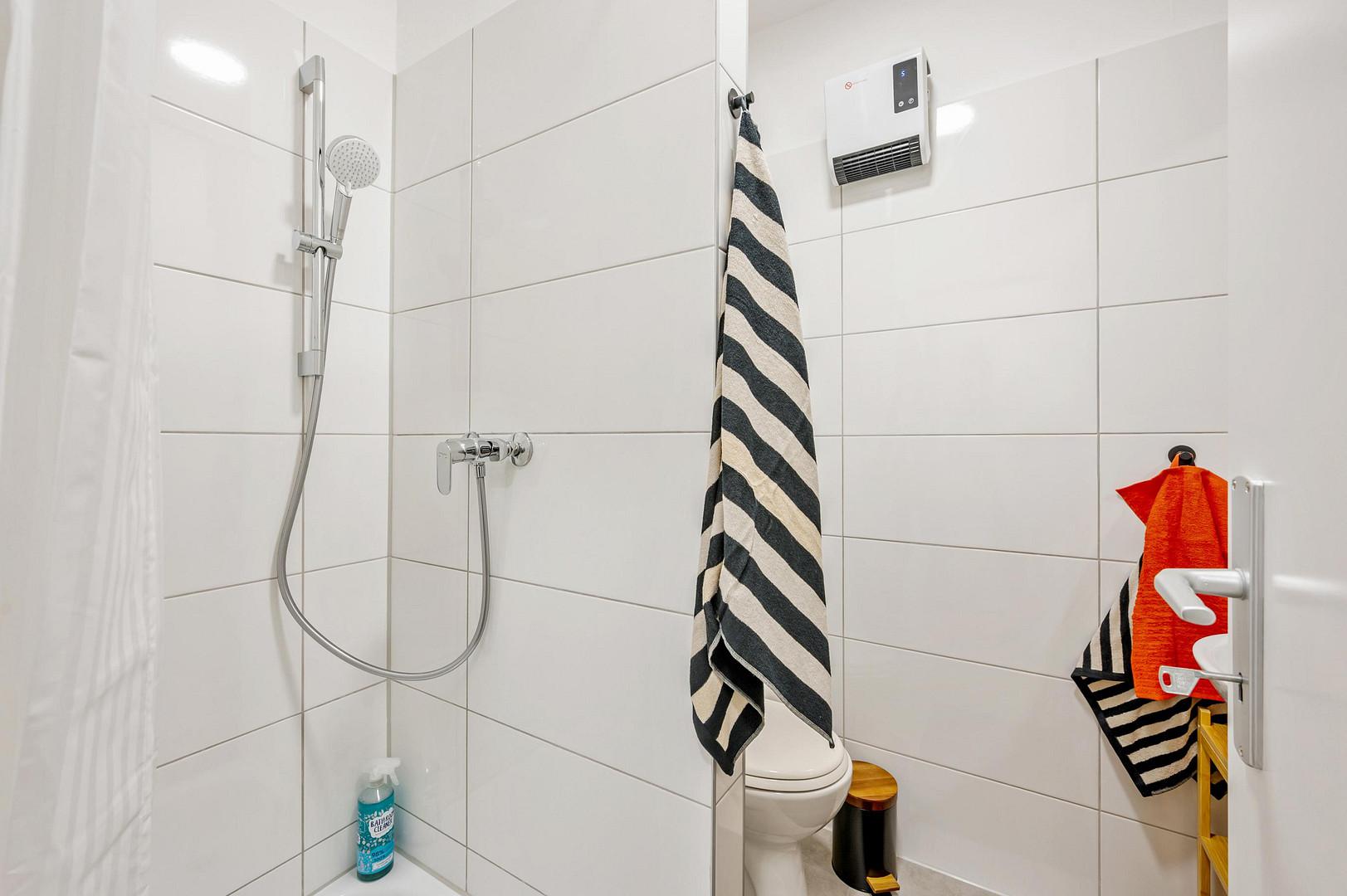 Reinigungsutensilien: Wischmopp und Reinigungsartikel sind vorhanden.