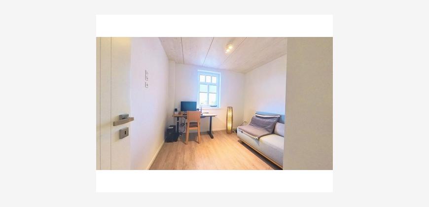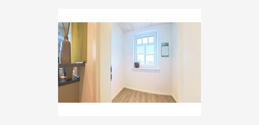 Die Küche wird durch eine angrenzende Speisekammer mit Fenster ergänzt, die sich hervorragend als Vorratsraum nutzen lässt. Zwei weitere Zimmer – das große Schlafzimmer sowie ein flexibel nutzbares Gäste-, Arbeits- oder Kinderzimmer – bieten optimale Voraussetzungen für unterschiedliche Wohnbedürfnisse.