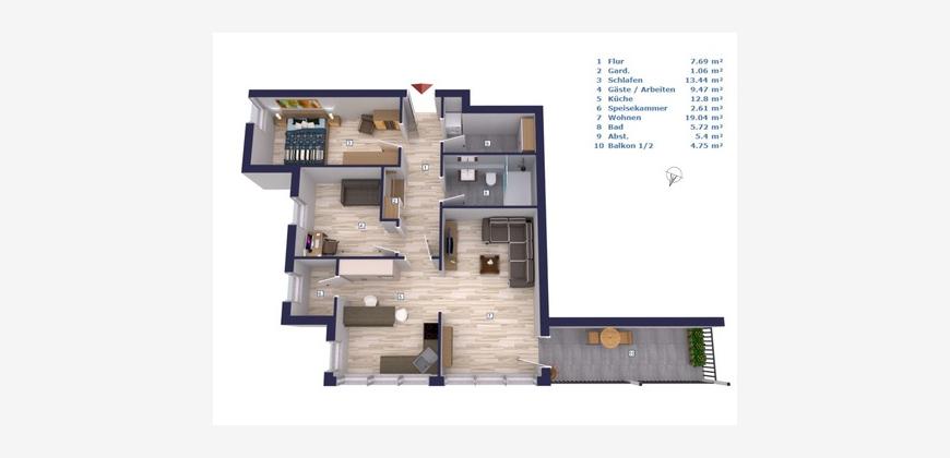 Die gesamte Wohnung ist mit Fußbodenheizung ausgestattet. Die modernen Vinylbodenbeläge in edler Parkettoptik unterstreichen das hochwertige Gesamtbild der Ausstattung.