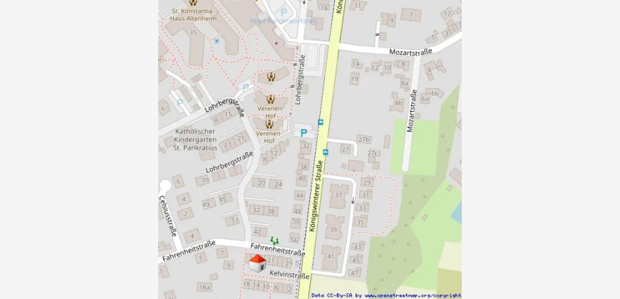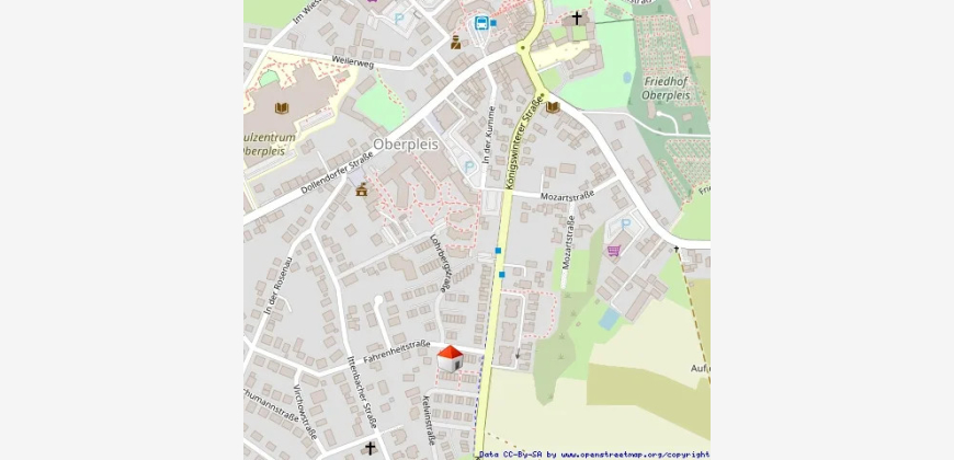 In der unmittelbaren Nähe zum Gebäude befinden sich kostenlose Parkmöglichkeiten und ein Kinderspielplatz. Der REWE Oberpleis ist fußläufig in wenigen Minuten erreichbar.