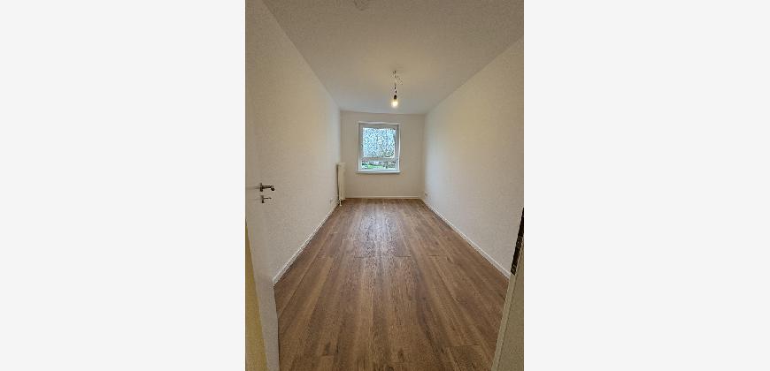 Die Wohnung wurde umfassend saniert und modernisiert, wobei Wert auf ein zeitloses und helles Design gelegt wurde. In allen Wohnräumen sowie im Flur wurde ein neuer, Laminatboden in Eichen-Optik verlegt, der harmonisch mit den frisch tapezierten und weiß gestrichenen Wänden korrespondiert.