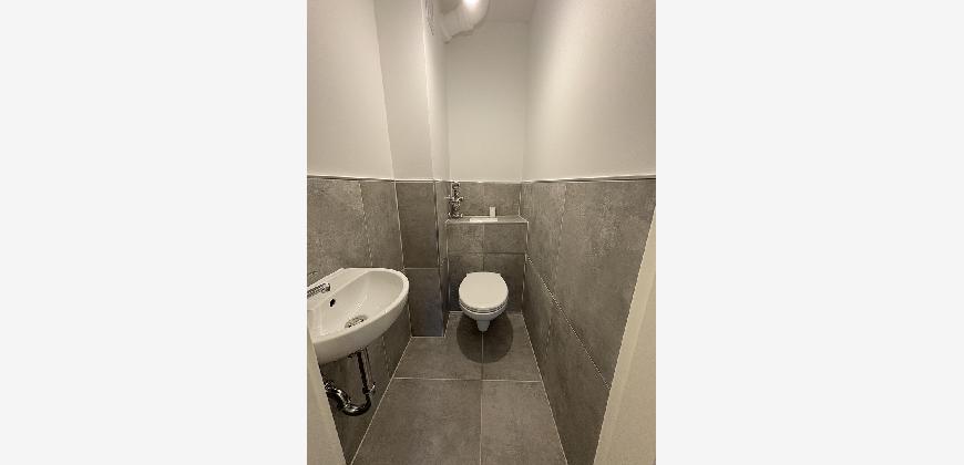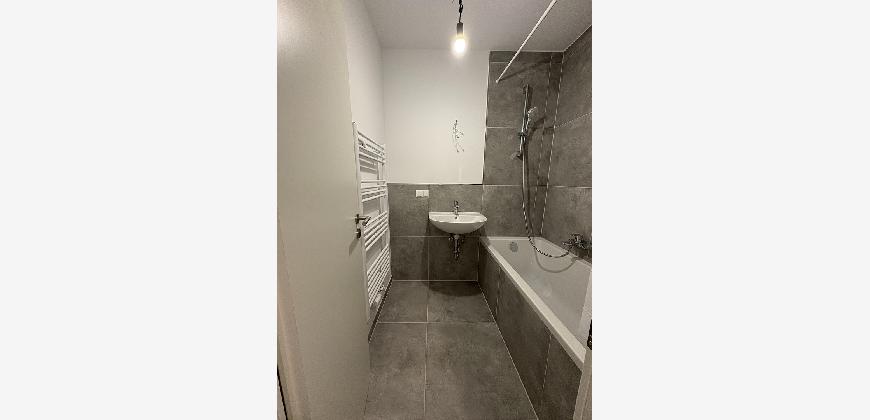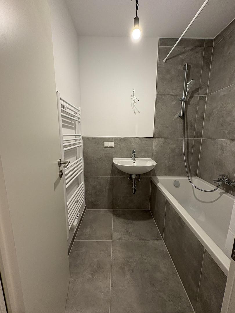Besonderes Augenmerk verdient die neue Einbauküche, die mit weißen Fronten und einer Arbeitsplatte in Holzoptik ausgestattet ist. Ein modernes Cerankochfeld sowie ein neuer Backofen sind bereits integriert und sofort einsatzbereit. Das Sanitär wurde ebenfalls vollständig runderneuert: Sowohl das Hauptbad als auch das separate Gäste-WC bestechen durch großformatige Fliesen in edler, anthrazitfarbener Stein-Optik, die einen exklusiven Kontrast zu den weißen Sanitärelementen bilden. Ein moderner Handtuchheizkörper und eine komfortable Badewanne runden das Wellness-Gefühl ab.