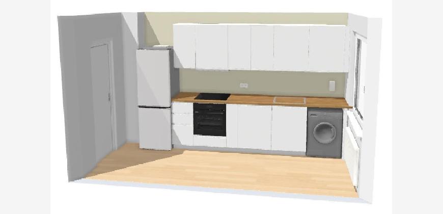 Die Wohnung bietet drei gut geschnittene Zimmer sowie einen Balkon, der zusätzlichen Wohnkomfort schafft. Besonders hervorzuheben ist die nagelneue Einbauküche, die erst kürzlich installiert wurde und einen sofortigen Einzug ohne weiteren Aufwand ermöglicht.