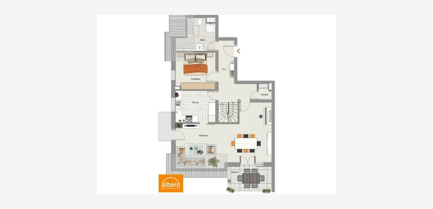 Diese außergewöhnliche 4-Zimmer-Maisonette-Wohnung verbindet großzügiges Wohnen mit naturnahem Lebensgefühl. Auf zwei Ebenen im 2. Obergeschoss und Dachgeschoss genießen Sie ein durchdachtes Raumkonzept, viel Licht und einen unverbaubaren Feldrandblick und großartigen Sonnenuntergängen (S/W-Lage) von gleich drei Balkonen.