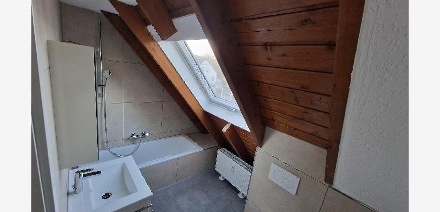 Zur Ausstattung gehört ein modernes, gefließtes Badezimmer mit Badewanne. Die restliche Wohnung ist mit einem Design Vinylboden ausgestattet. Außerdem befindet sich in einem Zimmer eine Einbauküche, welche an den offenen Wohnbereich angrenzt. Im Keller befindet sich ein zusätzliches Kellerabteil und eine Waschküche mit den Wohneinheiten zugeordneten Anschlüssen für Waschmaschine und Trockner.