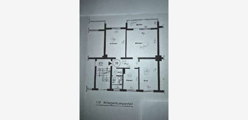 Es handelt sich um eine 3-Zimmer-Wohnung mit Küche, Diele, Bad/WC und Westbalkon.