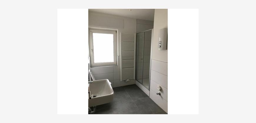 Der offene Wohnbereich verbindet den Wohn- und Essbereich miteinander und bietet so den perfekten Raum für gesellige Abende mit Freunden oder entspannte Stunden mit der Familie. Die große Fensterfront lässt viel Licht hinein und vermittelt ein Gefühl von Weite. Das Badezimmer ist modern ausgestattet und sorgt mit seiner hochwertigen Ausstattung für einen Hauch von Luxus im Alltag. Hier können Sie sich eine Auszeit nehmen und entspannen.