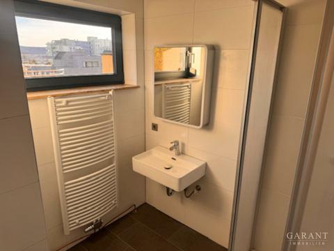 * Bad mit Dusche, Handwaschbecken, WC und Handtuchheizkörper