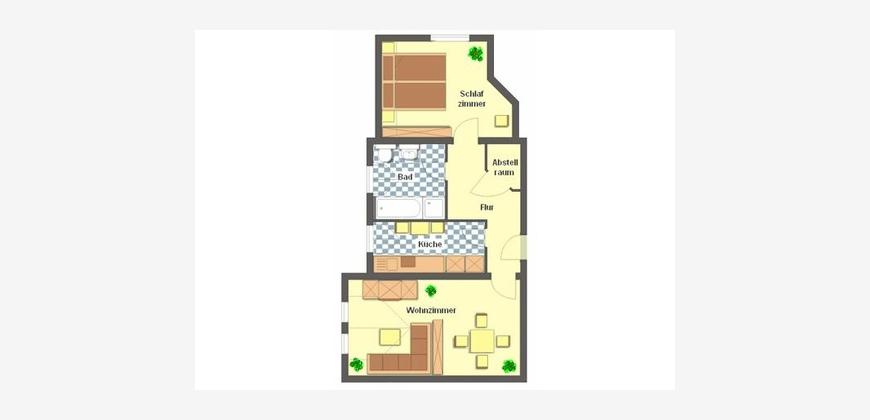 Die Wohnung befindet sich im Zentrumsrand. Die Geraer Innenstadt und der Hauptbahnhof sind in wenigen Minuten zu Fuß zu erreichen. In unmittelbarer Nähe befinden sich auch Geschäfte des täglichen Bedarfs.