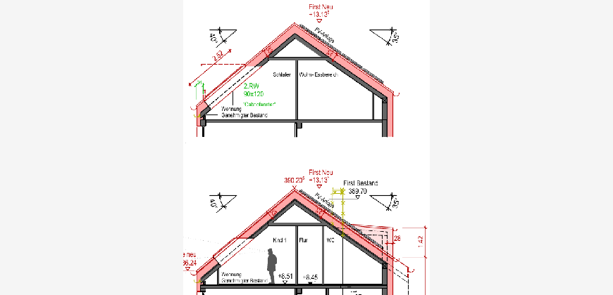 Charmant sind die Raumhöhen, das Dach ist teilweise bis zum First offen, der Spitzboden als Lager oder Liegefläche nutzbar. Eine kleine Loggia als weit öffenbares Dachflächenfenster öffnet bei geeignetem Wetter einen Raum.